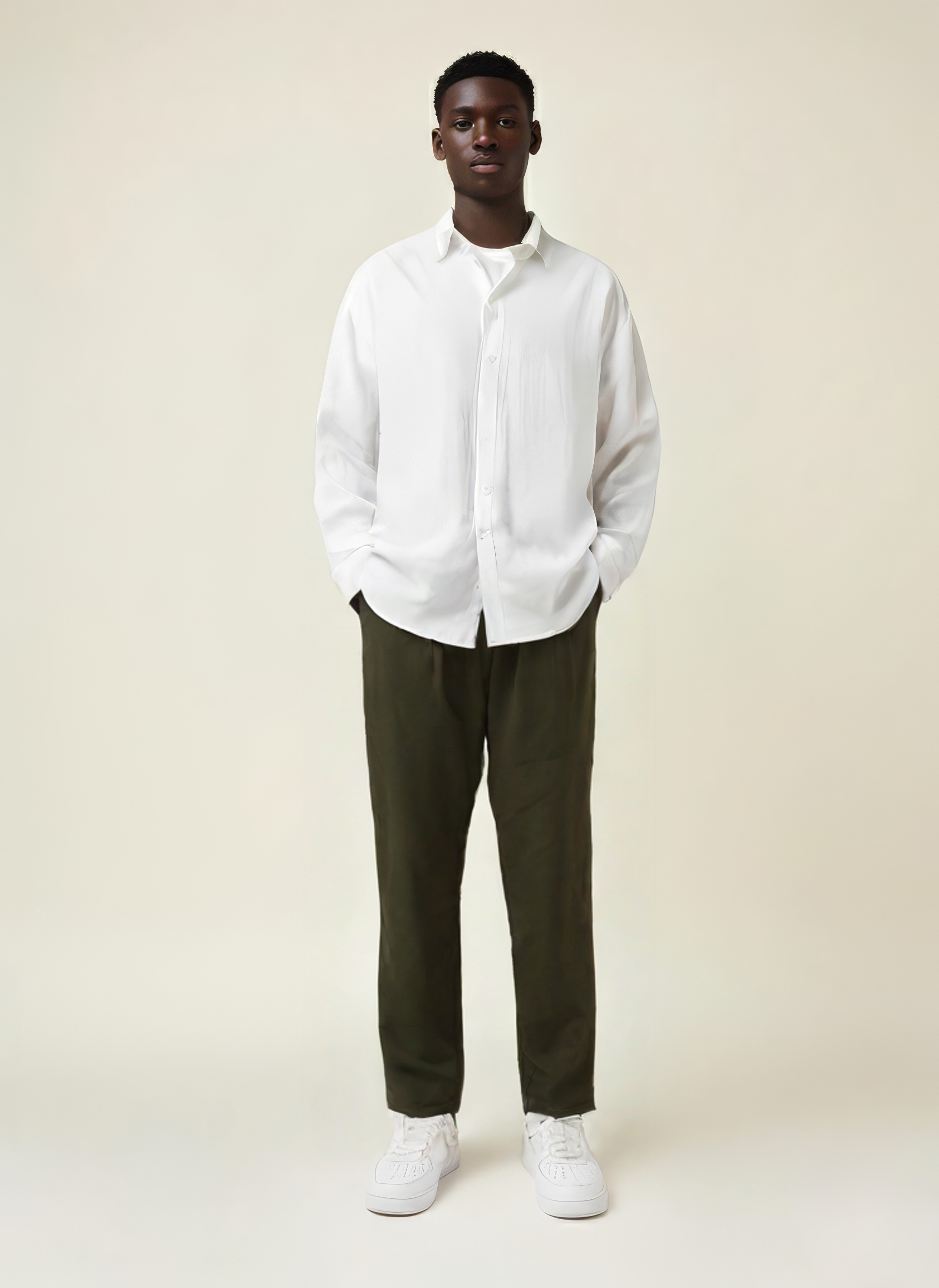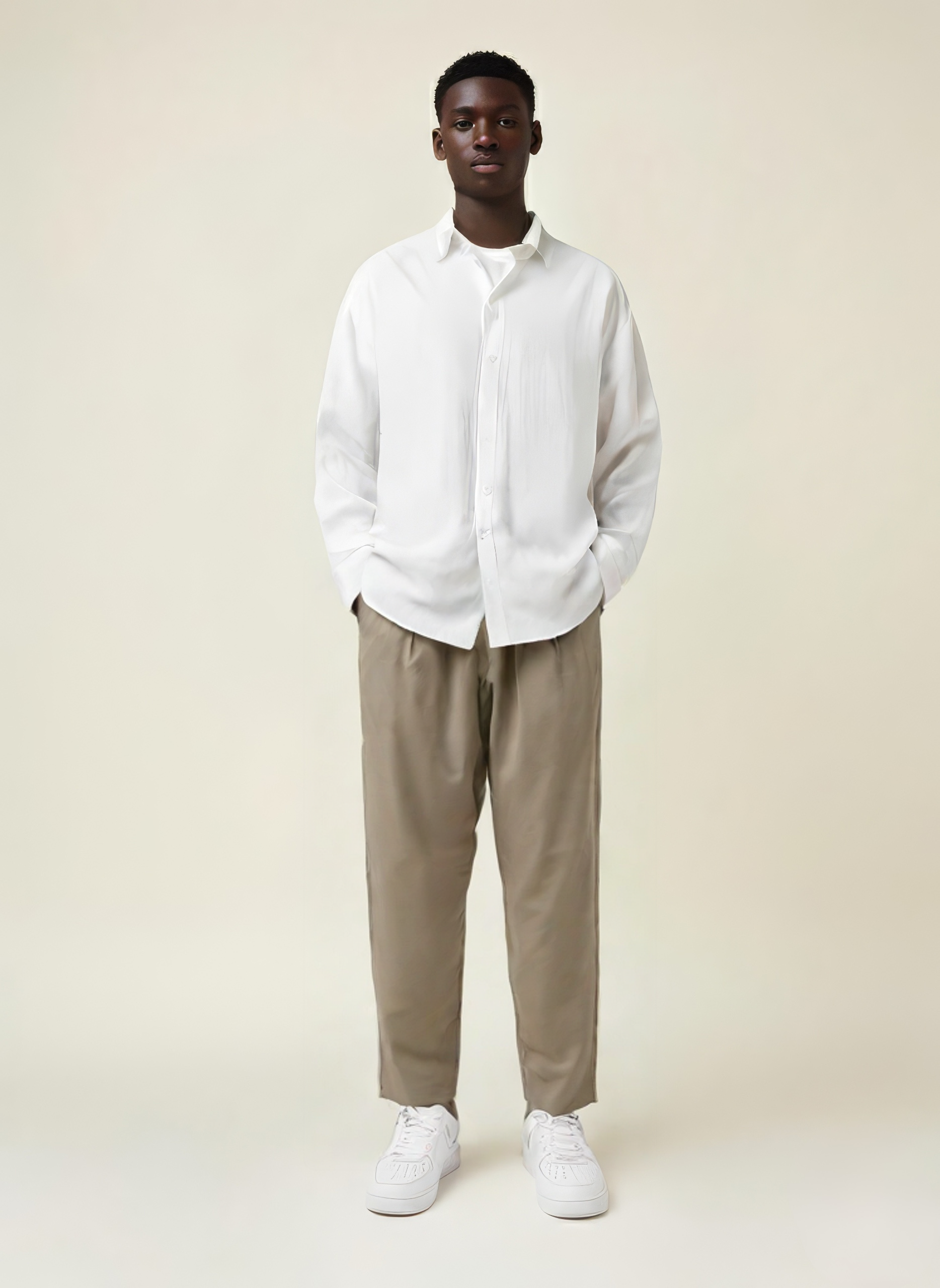 Hafif ve dökümlü yapısıyla hem konfor hem de şıklık sunan bu pantolon, günlük kombinleriniz için ideal bir tercih. Rahat kesimi ve modern tasarımıyla her ortamda stil sahibi bir görünüm sağlar.